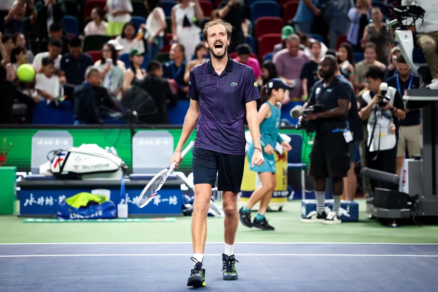 梅德韦杰夫在第二盘一度取得3比0的领先优势,勒纳·钱随后强势反扑,追平比分并在抢七中获胜。“当时我抽筋了,还是硬撑着继续打高升网,甚至感觉自己像40岁一样体力不支。”幸好盘间休息后,梅德韦杰夫的身体状态逐渐恢复,最终在决胜盘获胜。